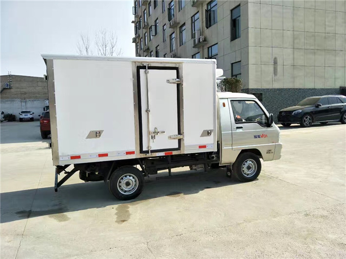 福田驭菱2.9米冷藏车(后双轮),整车型号:BJ5030XLC-D5,底盘型号:BJ1030V5JL3-D5,锐展TNN4G15B发动机,1.5排量,112马力,驭菱车身,1500mm宽驾驶室,5档,方向助力,175R14真空胎,动转,后双胎,前盘制动,总质量:3235kg,整备质量:1610kg,额定载质量1495kg,整车尺寸:4850×1690×2370(mm),箱体内尺寸:2900×1560×1465(mm),蓝牌,厢体:内外玻璃钢,8cm高密度聚氨酯保温,底板为防滑花纹铝板,后门锁件为不锈钢。制冷机组:选装-5度(冷藏)或者-15度(冷冻),温度可以调节。