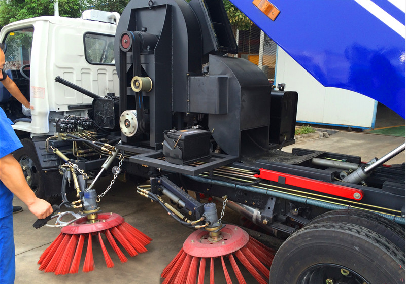 扫路车标准配置:带中置扫盘4把;扫盘转速实现独立3档调速;江铃78马力副发动机(145及以上为康明斯140马力副发动机);三洋马达;施耐德控件开关;海普瑞斯电磁阀组,无极变速自动离合器,免维护离心式风机,不锈钢垃圾箱,北极星电子水泵,垃圾箱举升自卸,尾部LED箭头灯,手动泵应急系统,前扫刷臂转动机构使用高新耐磨工程隔套,免打黄油;精密冷弯无缝液压油管。可配置前冲后洒,倒车影像作业监控等,更多车型及价格拨打销售热线:152-7131-0950(微信同号)