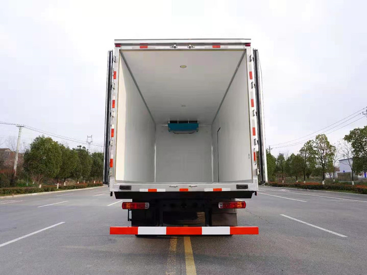 二·厢体配置:采用我公司液压吸附一体成型生产线制造,保温性能达到国家A级标准,厢体内部容积为40立方,厢体内外采用新款纳米玻璃钢(不吸光,隔热性好,硬度强,抗氧化),厢体厚度为8CM,内衬骨架为防锈处理武钢优质轻钢型材,保温材料为无空隙填充聚氨酯发泡,厢体底部为铝合金花纹板或平面纳米玻璃钢,厢体采用镀锌不锈钢包角,加厚型铝合金包边,后门框为不锈钢,加厚型不锈钢后门合页及锁件,厢体内部采用LED照明灯及厢体示宽灯!